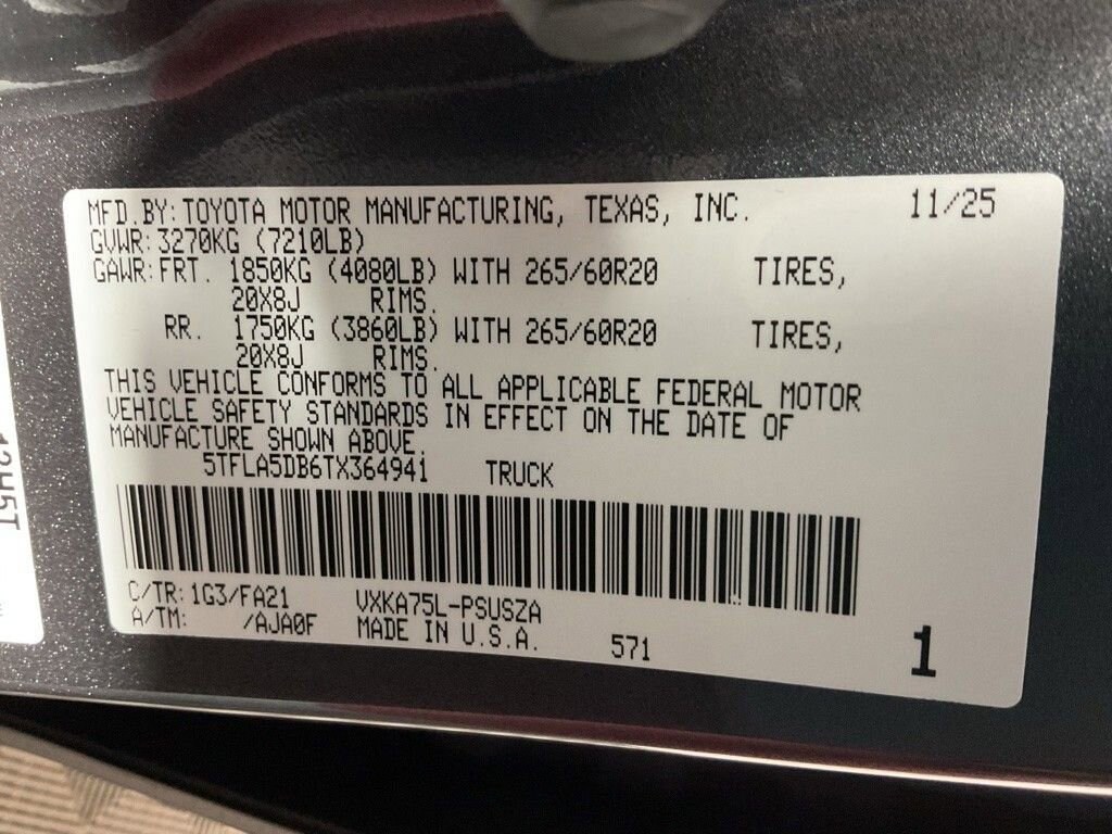 4WD, Black w/Fabric Seat Trim, Apple CarPlay/Android Auto, Auto High-beam Headlights, Blind Spot Monitor, Exterior Parking Camera Rear, Fabric Seat Trim, Parking Support Alert/Brake, Power driver seat, SR5 Convenience Package, SX Package, Variably intermittent wipers, Wheels: 20" TRD Sport Alloy.