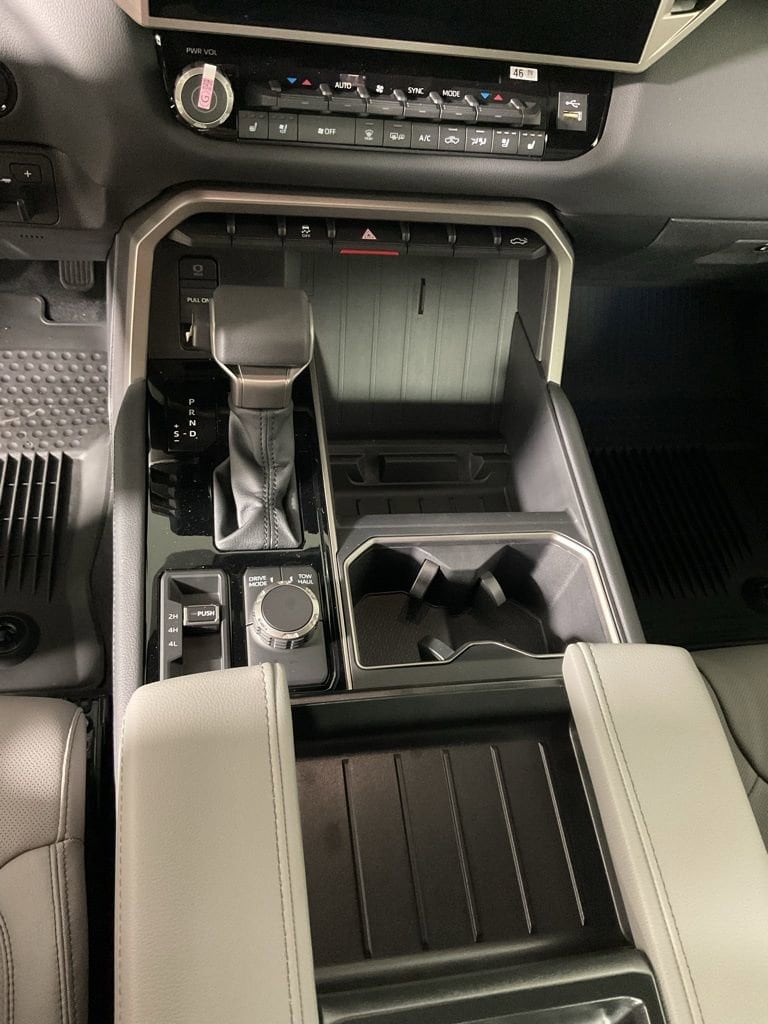 - Fixed center console with gated shift lever, driving controls, four cup holders, and center storage bin