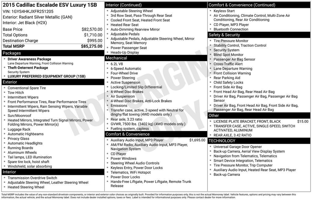 A short drive from Athens, Cambridge, Chillicothe, Circleville, Columbus, Lancaster, Logan, Marietta, Nelsonville, Newark, Pickerington, Pomeroy, and Zanesville in Ohio, as well as Charleston, Clarksburg, Huntington, Morgantown, Parkersburg, Vienna, and Wheeling in West Virginia. 900 East State St. Athens, OH 45701. Near Ohio University! Down the road from Hocking Hills! Vehicle: 2015 Cadillac Escalade ESV Luxury Price: (live market adjusted) CarFax: True, available today Stock#: T251205C | VIN Ending: 1GYS4HKJXFR251205 Delivery: Nationwide delivery available.