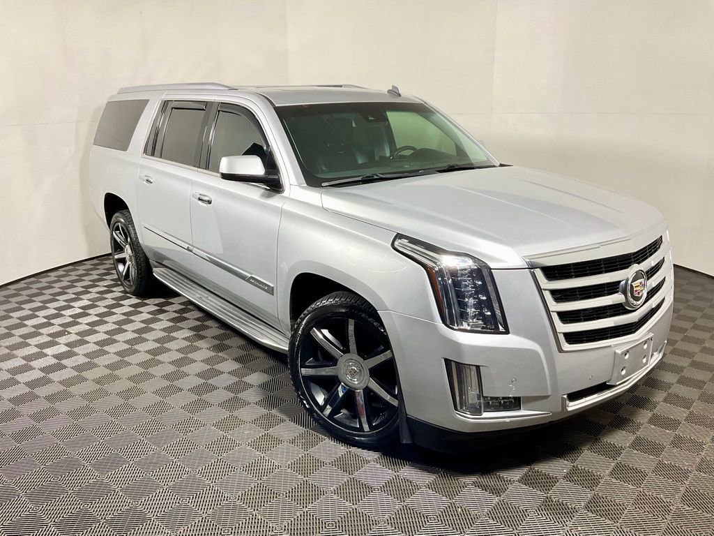 Clean CARFAX! This Cadillac Escalade ESV Luxury has many features and is well equipped including, Power Moonroof, Heated Steering Wheel, Heated Seats, Ventilated Seats, Leather Seats, 4-Wheel Drive, Backup Camera, 16 Speakers, 3rd Row DVD Screen, Adaptive Suspension, Adjustable pedals, Air Conditioning, Auto High-beam Headlights, Auto tilt-away steering wheel, Auto-dimming door mirrors, Auto-dimming Rear-View mirror, Bose Centerpoint Surround Sound System, Brake assist, Driver Awareness Package, Dual-Zone Automatic Temperature Control, Electronic Stability Control, Exterior Parking Camera Rear, Forward Collision Alert, Front Bucket Seats, Heads-Up Display, Heated & Cooled Front Bucket Seats, Heated door mirrors, Heated front seats, Heated Rear Seats, IntelliBeam Headlamps, Lane Change Alert, Lane Departure Warning System, Magnetic Ride Control Suspension, Memory seat, Navigation System, NavTraffic, Pedal memory, Power Liftgate, Power Tilt-Sliding Sunroof w/Express-Open/Close, Preferred Equipment Group 1SB, Radio: Cadillac CUE Info/Media Ctrl Sys w/Embd Nav, Rear air conditioning, Rear Cross-Traffic Alert, Rear Seat Entertainment System, Reconfigurable 4-Color Head-Up Display, Second Row Bucket Seats, Side Blind Zone Alert, Single Slot CD/MP3 Player, SiriusXM Satellite Audio System, Split folding rear seat, Steering wheel memory, Steering wheel mounted audio controls, Theft-Deterrent Package, Ventilated front seats.