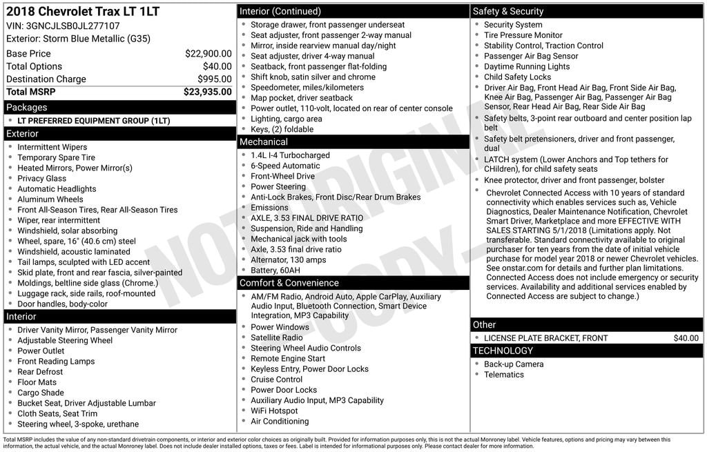 A short drive from Athens, Cambridge, Chillicothe, Circleville, Columbus, Lancaster, Logan, Marietta, Nelsonville, Newark, Pickerington, Pomeroy, and Zanesville in Ohio, as well as Charleston, Clarksburg, Huntington, Morgantown, Parkersburg, Vienna, and Wheeling in West Virginia. 810 East State St. Athens, OH 45701. Near Ohio University! Down the road from Hocking Hills! Visit us at 810 East State Street Athens, OH 45701. Vehicle: 2018 Chevrolet Trax LT Price: 9210 (live market adjusted) CarFax: True, available today Stock#: H2F0032BT | VIN Ending: 3GNCJLSB0JL277107 Delivery: Nationwide delivery available.