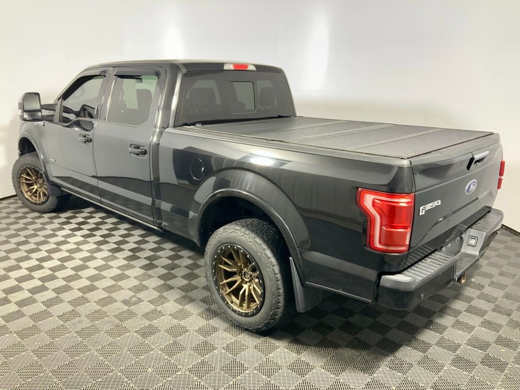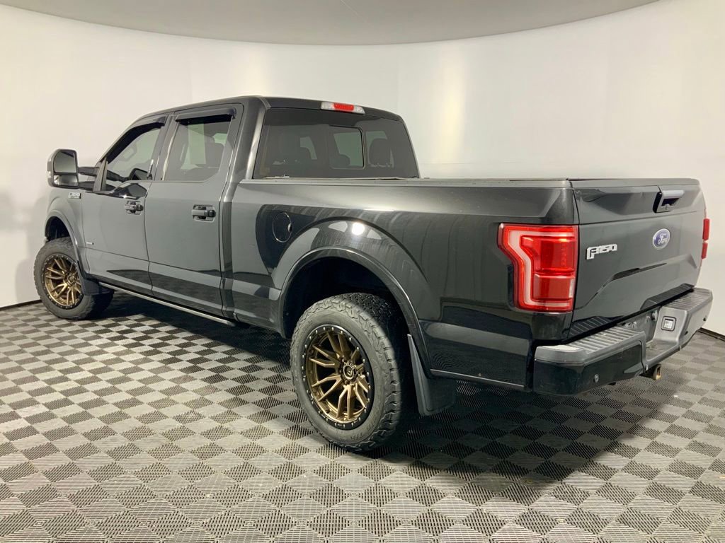 2015 Ford F-150 LARIAT 4x4 SuperCrew delivers premium comfort, powerful performance, and advanced capability in a bold full-size pickup. Finished in Tuxedo Black Metallic with a refined Black leather-trimmed bucket seat interior, this truck combines rugged durability with upscale design. Under the hood is a strong 3.5L EcoBoost V6 engine paired with an electronic 6-speed automatic transmission and 4x4 drivetrain, providing impressive towing capability along with an efficient 17 city / 23 highway MPG.