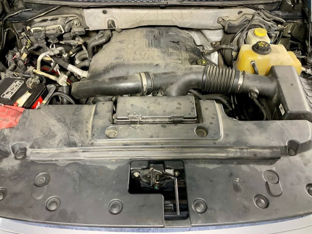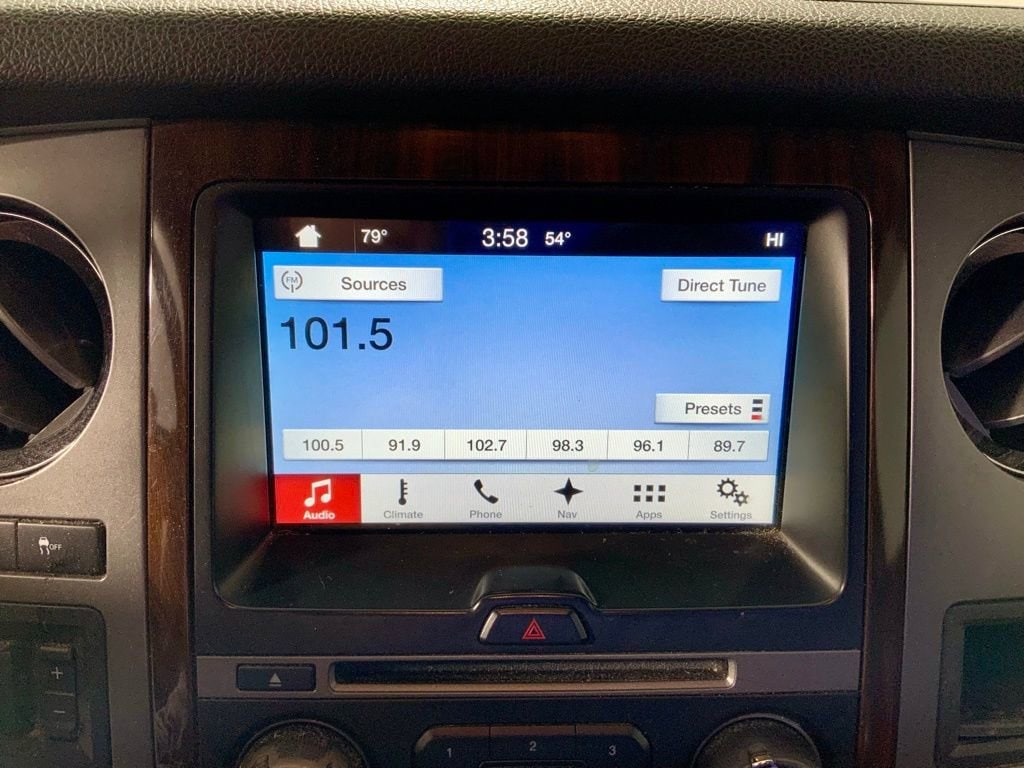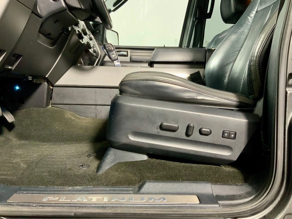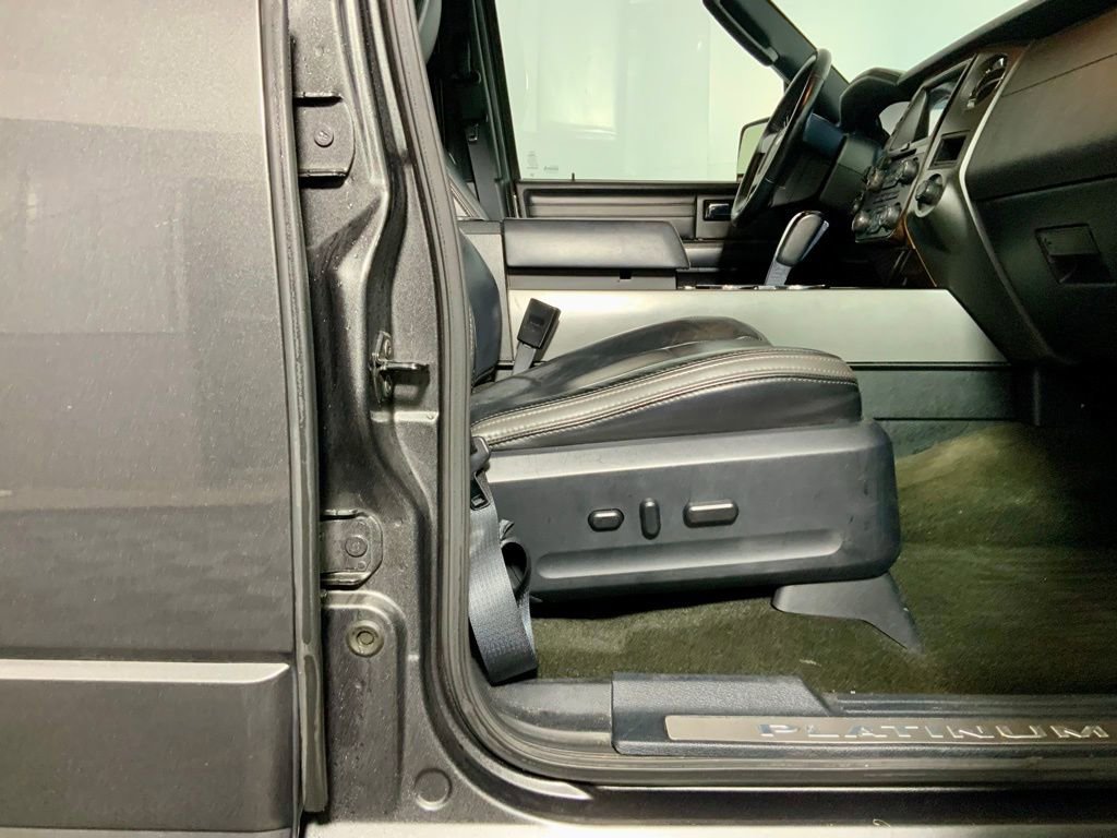 Inside, the Platinum trim surrounds you with premium features including heated and cooled perforated leather front bucket seats, second-row bucket seating, wood-grain interior accents, and a leather-wrapped steering wheel. Advanced technology highlights include SYNC 3, voice-activated navigation, premium Sony sound system, rear-seat DVD entertainment, and multiple power outlets throughout the cabin.