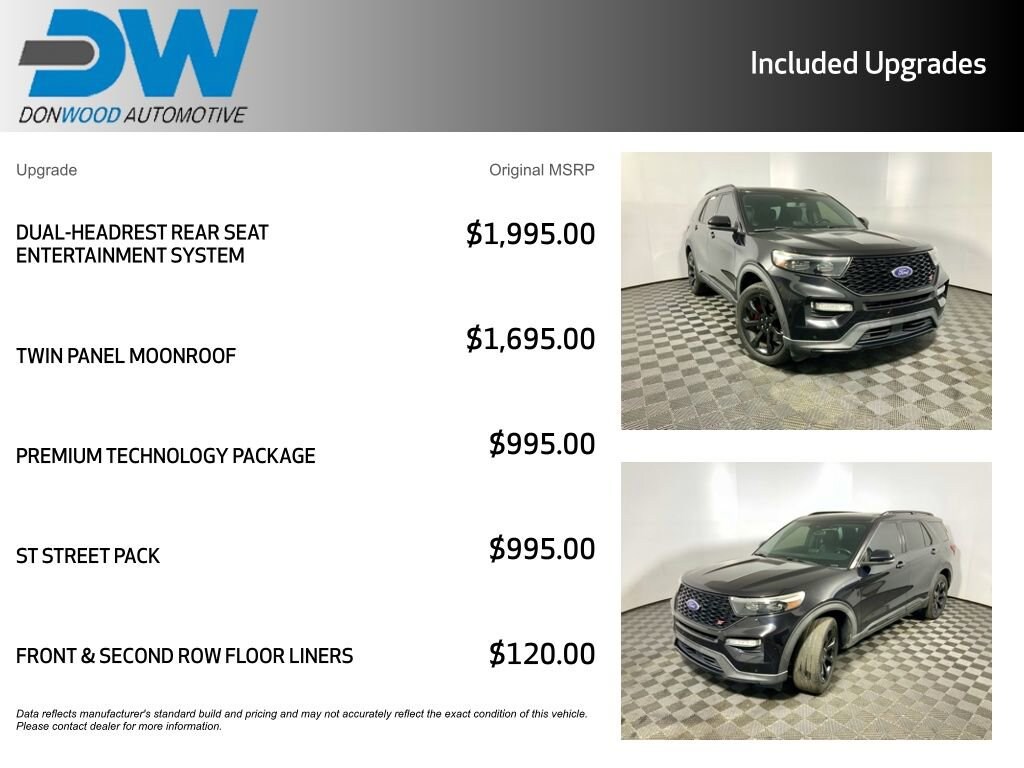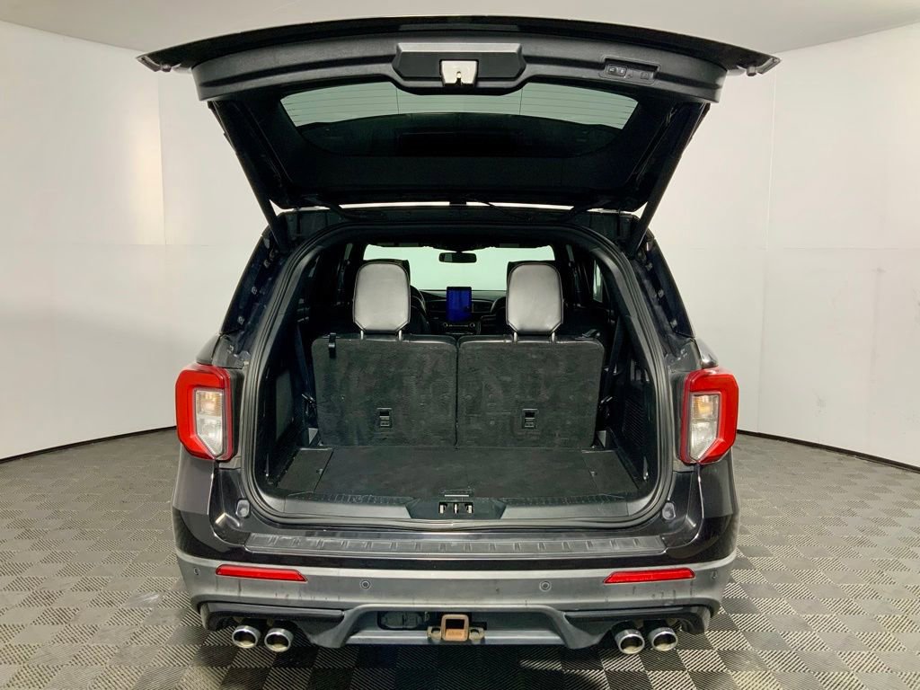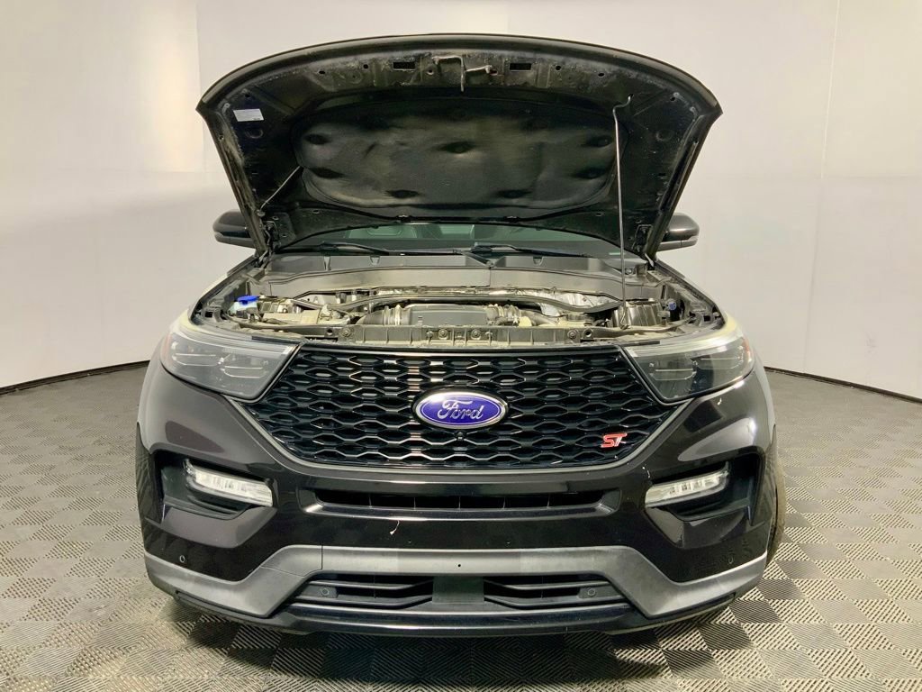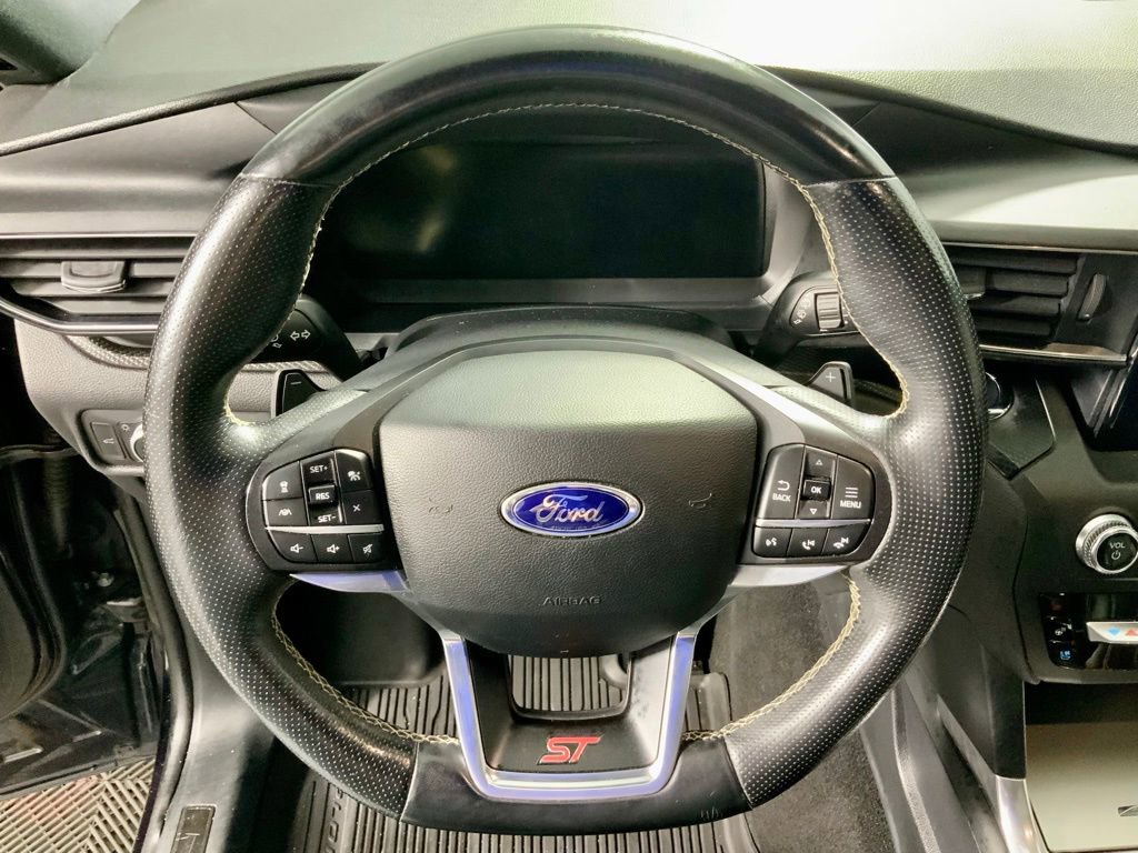 Clean CARFAX! This Ford Explorer ST has many features and is well equipped including, Apple CarPlay, Power Moonroof, Heated Steering Wheel, Heated Seats, Ventilated Seats, Leather Seats, Remote Vehicle Start, 360 Degree Backup Camera, 4-Wheel Drive, 10.1" LCD Capacitive Portrait Touchscreen, 12 Speakers, 2 Additional Speakers, 20" Machined Aluminum Low Gloss Ebony Wheels, Auto High-beam Headlights, Auto-dimming door mirrors, Auto-dimming Rear-View mirror, Brake assist, Bumpers: body-color, Delay-off headlights, Dual-Headrest Rear Seat Entertainment System, Dual-Zone Automatic Temperature Control, Electronic Stability Control, Emergency Communication System: SYNC 3 911 Assist, Exterior Parking Camera Rear, FordPass Connect, Front Bucket Seats, Fully automatic headlights, Garage Door Transmitter: HomeLink, Heated door mirrors, Heated front seats, Heated Rear Seats, Heated steering wheel, Leather Htd/Ventilated Sport Captain's Chairs, Leather steering wheel, Memory seat, Navigation System, Panic Alarm, Performance Front & Rear Brakes, Power door mirrors, Power driver seat, Power Liftgate, Power windows, Premium Technology Package, Radio: B&O Sound System by Bang & Olufsen, Rain Sensing Wipers, Rear air conditioning, Rear window wiper, Remote Keyless Entry, Security System, Speed-Sensitive Wipers w/Heated Jets, Sport steering wheel, ST Street Pack, Steering wheel memory, Steering wheel mounted audio controls, SYNC 3 Communications & Entertainment System, SYNC 3/Apple CarPlay/Android Auto, Telescoping Steering Wheel, Tilt Steering Wheel, Trip Computer, Twin Panel Moonroof, Ventilated front seats, Voice-Activated Touchscreen Navigation System, Wheels: 21" Aluminum.