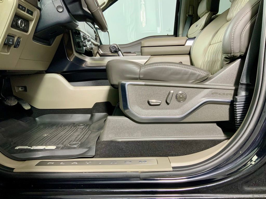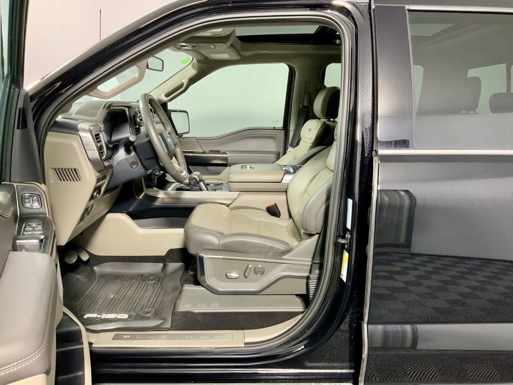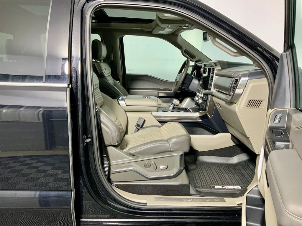 Clean CARFAX! CARFAX One-Owner! A complimentary Lifetime Powertrain Limited Warranty is included with this Ford F-150 Platinum!, This Ford F-150 Platinum has many features and is well equipped including, Apple CarPlay, Power Moonroof, Heated Steering Wheel, Heated Seats, Ventilated Seats, Leather Seats, Remote Vehicle Start, Captain's Chairs, Navigation, Great Price, 360 Degree Backup Camera, Blind Spot Monitoring, Integrated Trailer Brake Controller, 4-Wheel Drive, 14 Speakers, 4-Wheel Disc Brakes, Adjustable pedals, Air Conditioning, AM/FM radio: SiriusXM with 360L, Auto High-beam Headlights, Auto tilt-away steering wheel, Auto-dimming door mirrors, Auto-dimming Rear-View mirror, Brake assist, Bumpers: body-color, Continuously Controlled Damping, Dual-Zone Automatic Temperature Control, Electronic Stability Control, Emergency communication system: SYNC 4 911 Assist, Equipment Group 703A Plus, Front Bucket Seats, Front wheel independent suspension, Full Quilted Leather Bucket Seats, Fully automatic headlights, Garage Door Transmitter, Heads-Up Display, Heated door mirrors, Heated front seats, Heated Rear Seats, Heated steering wheel, Leather-Wrapped Instrument Panel, Max Recline Driver & Passenger Seat, Memory seat, Navigation system: Connected Navigation, Outside temperature display, Overhead console, Panic Alarm, Pedal memory, Platinum Hood Lettering, Platinum Plus Exterior Theme, Platinum Plus Interior Theme, Platinum VIN Badge on Console, Power door mirrors, Power passenger seat, Power windows, Radio: B&O Unleashed Sound System by Bang & Olufsen, Rain Sensing Wipers, Rear step bumper, Remote Keyless Entry, Satin Single Exhaust, Security System, Speed control, Split folding rear seat, Steering wheel mounted audio controls, SYNC 4 w/Enhanced Voice Recognition, Traction Control, Tray Style Floor Liner, Twin Panel Moonroof, Unique Multi-Contour Leather Bucket Seats, Unique Quilted Floor Mats, Ventilated front seats, Wheel Well Liner, Wheels: 22" Premium Painted w/Chrome Inserts.