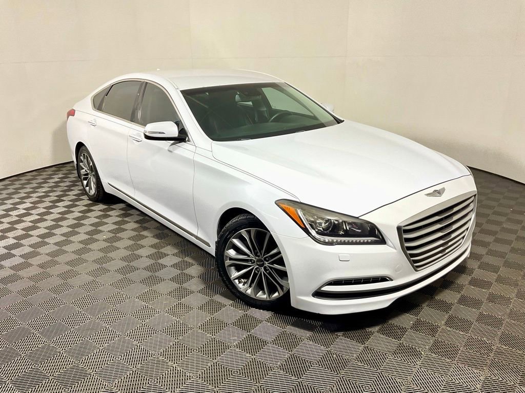 Genesis 3.8, 3.8L V6 DGI DOHC Dual CVVT, AWD, Casablanca White, Black Leather, Auto-dimming Rear-View mirror, Exterior Parking Camera Rear, Heated steering wheel, Navigation System, Power Heated Front Bucket Seats.
