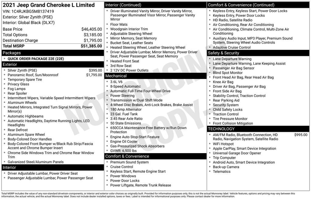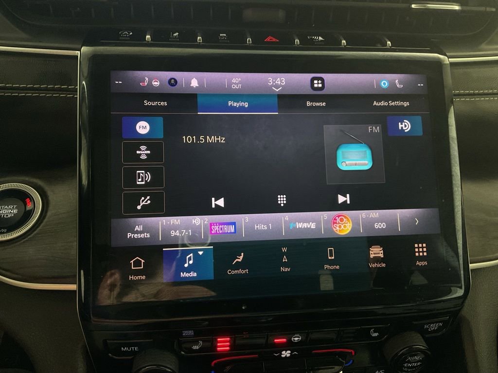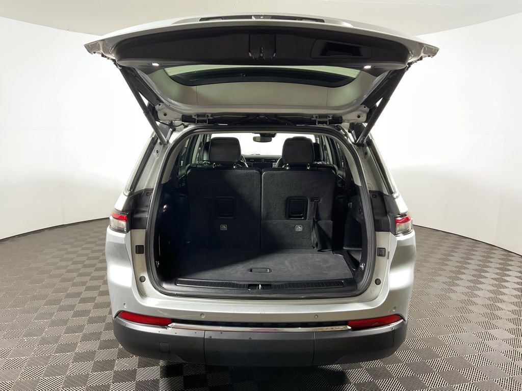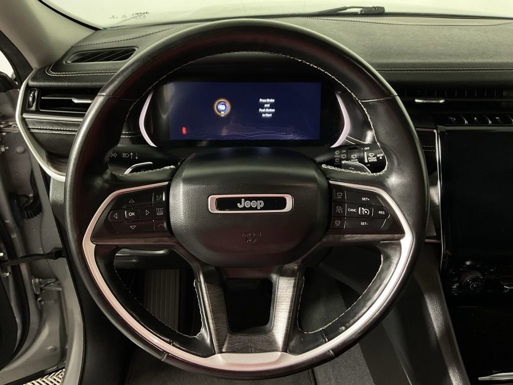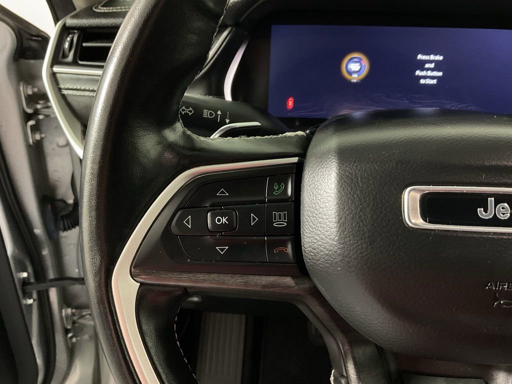 Clean One-Owner CARFAX! Dual Pane Panoramic Sunroof, Capri Leather Seats, Heated Front Seats, Heated Second Row Seats, Heated Steering Wheel, 8 Way Power Adjustable Driver Seat With Memory, 8 Way Power Adjustable Front Passenger Seat, Driver Seat Memory, Air Conditioning With Three Zone Automatic Temperature Control, 2nd Row Buckets With Manual Easy Entry Slide, 3rd Row 50/50 Manual Folding Seat, Power Liftgate, Remote Start System, Uconnect 5 Navigation With 10.1 Inch Display, GPS Navigation, Connected Travel And Traffic Services, Apple CarPlay, Google Android Auto, Jeep Connect, 4G LTE Wi Fi Hot Spot, SiriusXM With 360L, Nine Amplified Speakers With Subwoofer And 506 Watt Amplifier, Full Function Media Hub With Two USB Plus Aux Port, 2nd Row Dual Charge Only USB Ports, 3rd Row Charge Only USB Ports, Universal Garage Door Opener, Interior Rear Facing Camera, LED Reflector Headlamps, Memory Heated Mirrors With Turn Signals, 18 Inch Fully Painted Aluminum Wheels, Quadra Trac I Four Wheel Drive System, Selec Terrain System, Adaptive Cruise Control With Stop And Go, Active Lane Management System, Full Speed Forward Collision Warning Plus, ParkView Rear Back Up Camera, ParkSense Rear Park Assist With Stop, Blind Spot And Cross Path Detection, Pedestrian And Cyclist Emergency Braking, Advanced Brake Assist, Automatic High Beam Headlamp Control, Rear Seat Object Alert, Electronic Stability Control, Hill Start Assist, Tire Pressure Monitoring Display, Anti Lock Four Wheel Disc Brakes, Conventional Differential Front Axle With Disconnect, 3.6 Liter V6 24 Valve VVT Engine With ESS. These premium comfort features deliver versatile seating, personalized climate control, and convenient cargo access, while advanced infotainment integrates navigation, smartphone compatibility, and high fidelity audio for an immersive experience. Exterior elements such as LED lighting, panoramic sunroof, and alloy wheels enhance style and functionality. Safety technologies combine collision mitigation, lane management, and parking assistance for confident maneuvering, while rugged capability features like Quadra Trac and Selec Terrain ensure traction and stability across varied conditions. The robust V6 engine provides smooth power delivery for daily driving and long distance travel.