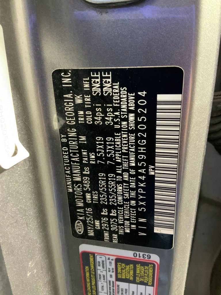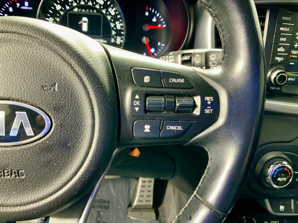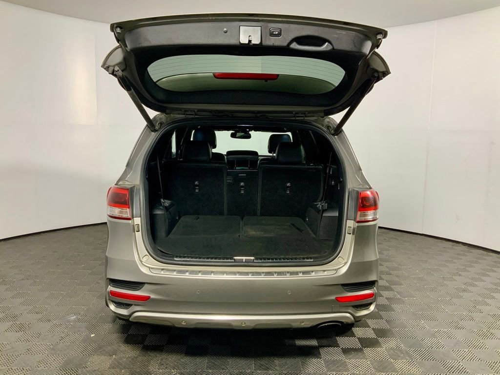 This Kia Sorento SX Limited has many features and is well equipped including, Power Sunroof, Heated Steering Wheel, Heated Seats, Ventilated Seats, Leather Seats, Blind Spot Monitoring, 10 Speakers, 3rd row seats: split-bench, 4-Wheel Disc Brakes, ABS Brakes, Air Conditioning, AM/FM Radio: SiriusXM, Auto-dimming Rear-View mirror, Automatic temperature control, Brake assist, Delay-off headlights, Dual-Zone Automatic Temperature Control, Electronic Stability Control, Emergency communication system: UVO3, Four wheel independent suspension, Front Bucket Seats, Fully Automatic (HID) High-Intensity Discharge Headlights, Fully automatic headlights, Garage Door Transmitter: HomeLink, Heated & Ventilated Front Bucket Seats, Heated door mirrors, Heated front seats, Heated Rear Seats, Heated steering wheel, Leather steering wheel, Memory seat, Nappa Leather Seat Trim, Navigation System, Overhead console, Panic Alarm, Panoramic Power Moonroof, Power driver seat, Power Liftgate, Power passenger seat, Power windows, Radio: AVN 4.0 Navigation System, Rear air conditioning, Rear Parking Sensors, Remote Keyless Entry, Security System, Speed control, Speed-Sensing Steering, Split folding rear seat, Steering wheel mounted audio controls, SXL Black Metallic Nappa Leather Seat Trim, Traction Control, Trip Computer, Ventilated front seats, Wheels: 19" x 7.5 10-Spoke Chrome Alloy.