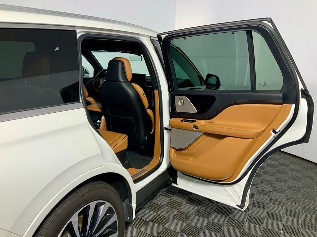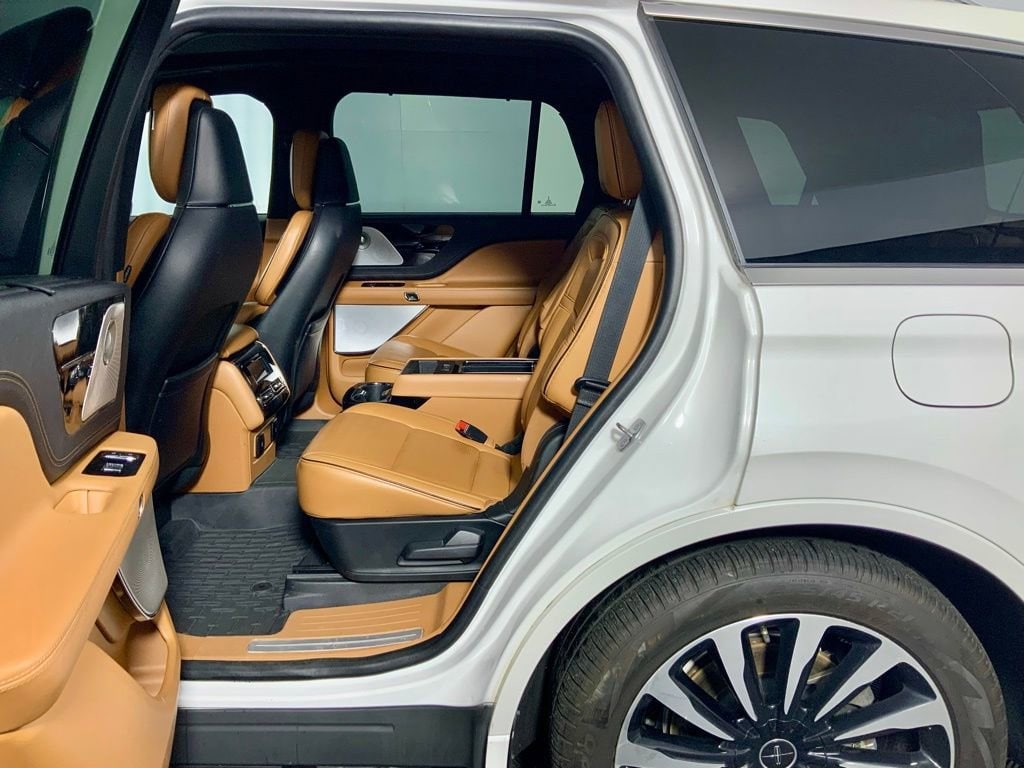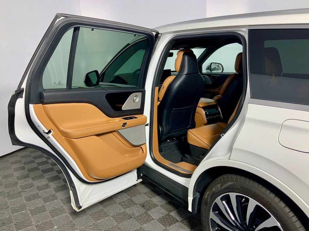 Clean CARFAX! CARFAX One-Owner! This Lincoln Aviator Plug-In Hybrid Black Label Grand Touring has many features and is well equipped including, Apple CarPlay, Power Moonroof, Heated Seats, Ventilated Seats, Leather Seats, Remote Vehicle Start, Navigation, Backup Camera, 28 Speakers, 30-Way Perfect Position Seats w/Active Motion, 3rd row seats: split-bench, 4-Pin & 7-Pin Connectors, 4-Wheel Disc Brakes, ABS Brakes, Adaptive Suspension, Air Conditioning, AM/FM Radio: SiriusXM, Audio memory, Auto High-beam Headlights, Auto-dimming door mirrors, Auto-dimming Rear-View mirror, Automatic temperature control, Black Floor Carpet/Mats, Blind Spot Information System, Brake assist, Bumpers: body-color, Class IV Hitch & Wiring, Class IV Trailer Tow Package, Darker Full Engine Turn Appliques, Delay-off headlights, Driver vanity mirror, Dual-Zone Automatic Temperature Control, Ebony Headliner, Ebony Leather-Wrapped Interior, Electronic Stability Control, Emergency communication system, Flight Theme, Front Bucket Seats, Front Center Armrest, Full Rear Console, Fully automatic headlights, Garage Door Transmitter, Head restraints memory, Heads-Up Display, Heated door mirrors, Heated front seats, Heated Rear Seats, Heated steering wheel, HVAC memory, Illuminated entry, Leather steering wheel, Mahogany Khaya Appliques w/Etched Logo, Mahogany Red Floor Carpet/Mats, Mahogany Red Headliner, Mahogany Red Leather-Wrapped Interior, Memory seat, Navigation System, Outside temperature display, Overhead console, Panic Alarm, Passenger vanity mirror, Power adjustable front head restraints, Power door mirrors, Power driver seat, Power Liftgate, Power moonroof: Panoramic Vista Roof, Power passenger seat, Radio: Revel Ultima 3D Audio System w/28 Speakers, Rain Sensing Wipers, Rear air conditioning, Rear dual zone A/C, Rear reading lights, Remote Keyless Entry, Savannah Leather Heated/Ventilated Seats (76E), Savannah Leather Heated/Ventilated Seats (76J), Security System, SiriusXM Radio, Smart Trailer Tow, Speed control, Speed-Sensitive Wipers w/Heated Jets, Split folding rear seat, Steering wheel memory, Steering wheel mounted A/C controls, SYNC 3 Communication & Entertainment System, Traction Control, Trailer Sway Control, Trip Computer, Variably intermittent wipers, Ventilated front seats, Ventilated rear seats, Wheels: 21" Bright-Machined Aluminum.