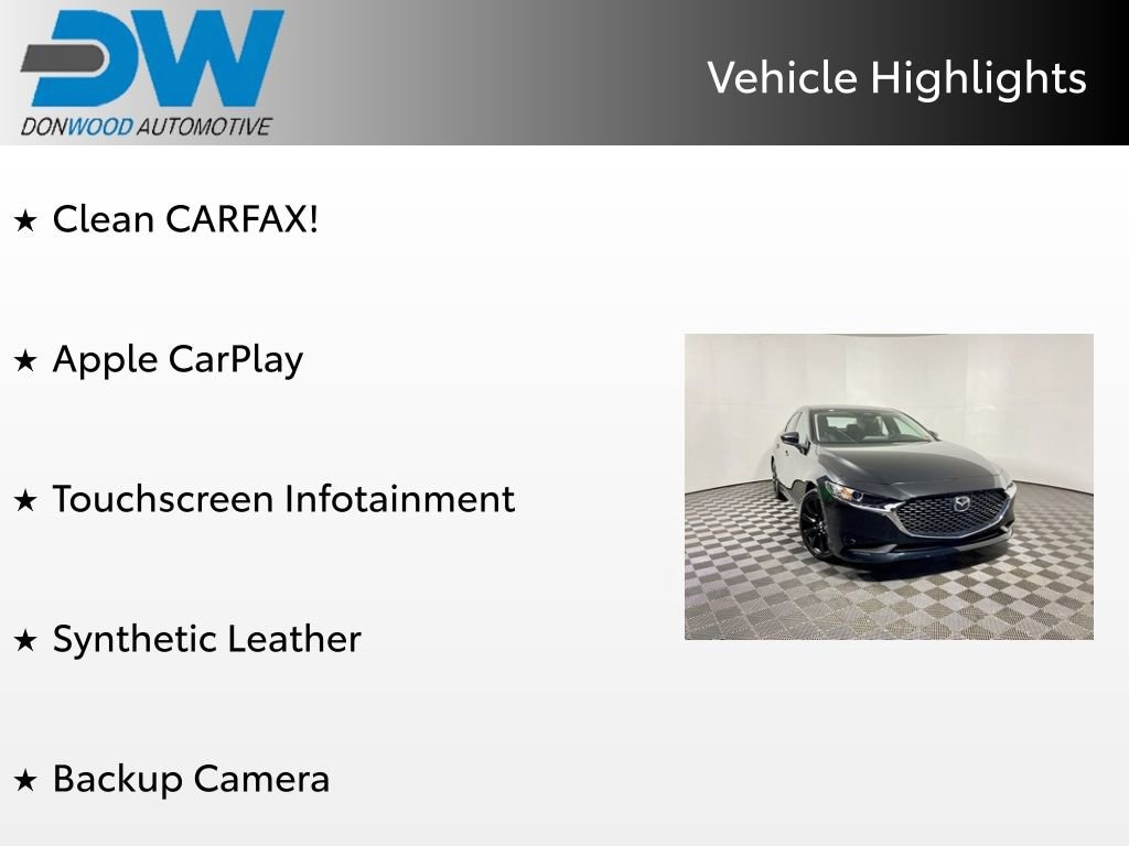 Clean CARFAX!, This Mazda Mazda3 2.5 S Select Sport has many features and is well equipped including, Apple CarPlay, Touchscreen Infotainment, Synthetic Leather, Backup Camera, 6 Speakers, Air Conditioning, Alloy wheels, AppLink/Apple CarPlay and Android Auto, Auto High-beam Headlights, Brake assist, Dual-Zone Automatic Temperature Control, Electronic Stability Control, Exterior Parking Camera Rear, Front Bucket Seats, Front Center Armrest, Fully automatic headlights, Leather Shift Knob, Leather steering wheel, Leatherette Seat Trim, MAZDA CONNECT Infotainment System, Radio: AM/FM Audio System, Rear window defroster, Remote Keyless Entry, Speed control, Steering wheel mounted audio controls.