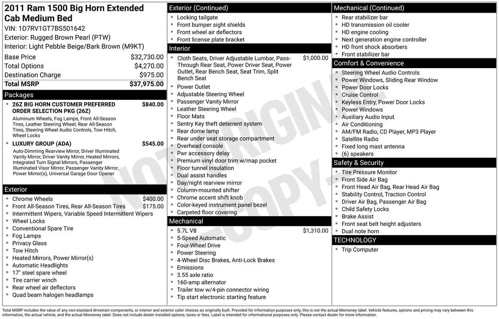 A short drive from Athens, Cambridge, Chillicothe, Circleville, Columbus, Lancaster, Logan, Marietta, Nelsonville, Newark, Pickerington, Pomeroy, and Zanesville in Ohio, as well as Charleston, Clarksburg, Huntington, Morgantown, Parkersburg, Vienna, and Wheeling in West Virginia. 2065 East State St. Athens, OH 45701. Near Ohio University! Down the road from Hocking Hills! Vehicle: 2011 Ram 1500 SLT Price: 11000 (live market adjusted) CarFax: True, available today Stock#: F648820PAAT | VIN Ending: 1D7RV1GT7BS501642 Delivery: Nationwide delivery available.