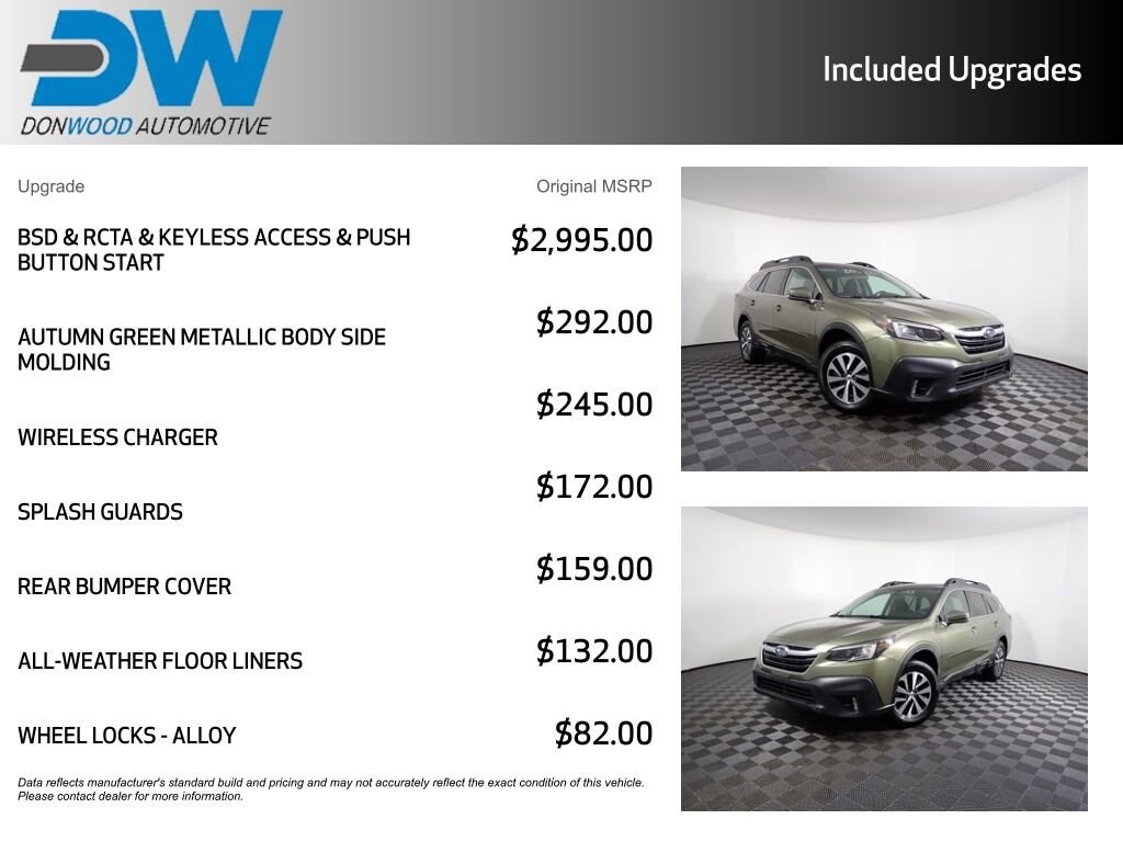 Clean CARFAX!, CARFAX One-Owner!, This Subaru Outback Premium has many features and is well equipped including, Good Price, Great Price, Backup Camera, Autumn Green Metallic Body Side Molding, Blind Spot Detection (BSD), BSD & RCTA & Keyless Access & Push Button Start, Bumpers: body-color, Hands-Free Power Rear Gate, Keyless Access w/Push Button Start, Power Moonroof, Radio: Subaru STARLINK 11.6" Multimedia Nav System, Rear Cross Traffic Alert (RCTA).