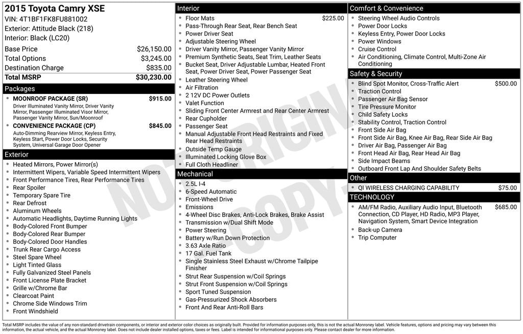 A short drive from Athens, Cambridge, Chillicothe, Circleville, Columbus, Lancaster, Logan, Marietta, Nelsonville, Newark, Pickerington, Pomeroy, and Zanesville in Ohio, as well as Charleston, Clarksburg, Huntington, Morgantown, Parkersburg, Vienna, and Wheeling in West Virginia. 900 East State St. Athens, OH 45701. Near Ohio University! Down the road from Hocking Hills! Vehicle: 2015 Toyota Camry XSE Price: 7920 (live market adjusted) CarFax: True, available today Stock#: T052441BT | VIN Ending: 4T1BF1FK8FU881002 Delivery: Nationwide delivery available.