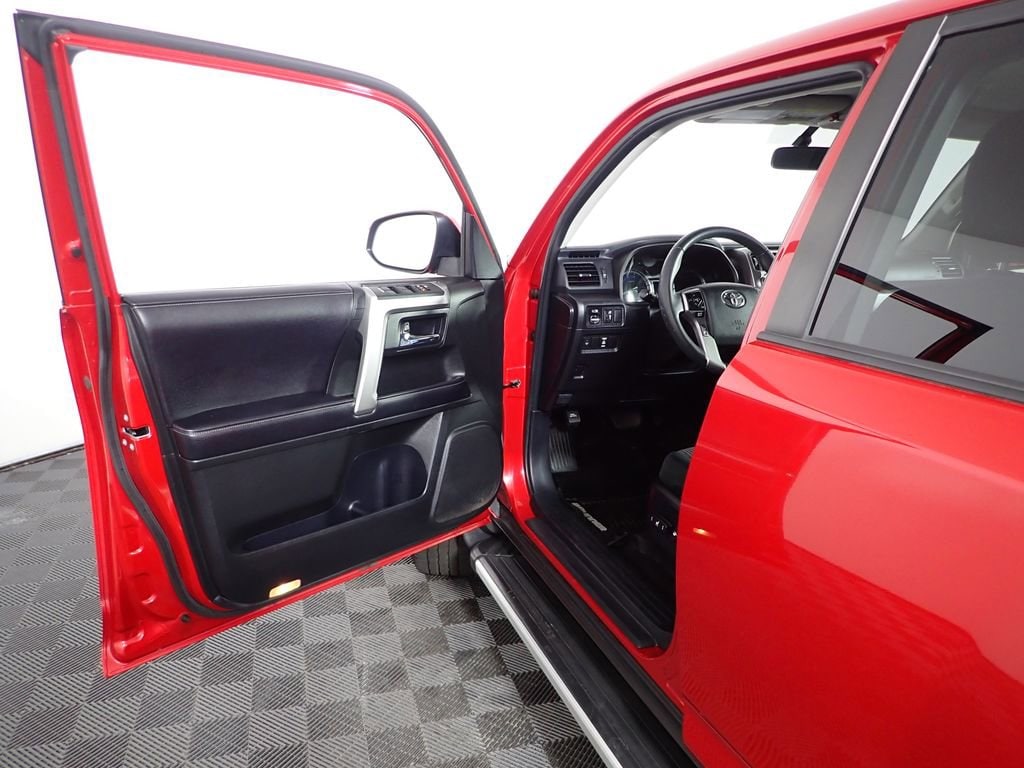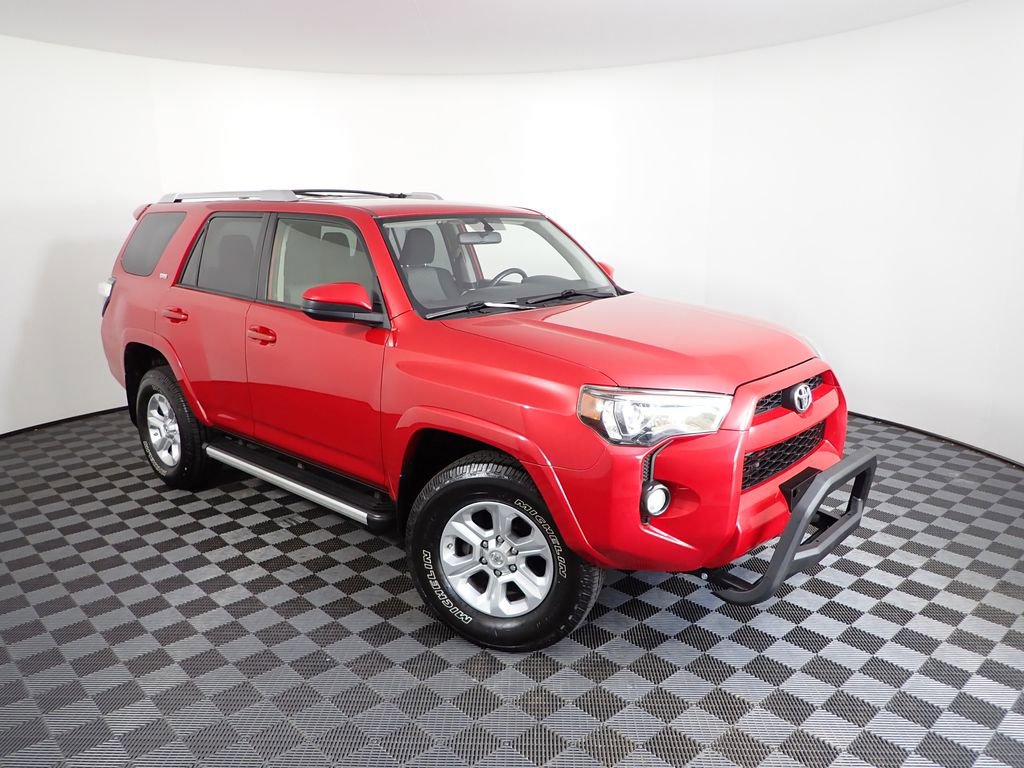 This Toyota 4Runner SR5 has many features and is well equipped including, 4-Wheel Drive, 17" x 7.0" 6-Spoke Alloy Wheels, 3.727 Axle Ratio, 8 Speakers, Air Conditioning, Brake assist, Electronic Stability Control, Front Bucket Seats, Front Center Armrest, Heated door mirrors, Leather Shift Knob, Leather steering wheel, Overhead console, Power door mirrors, Power driver seat, Radio: Entune Audio Plus, Remote Keyless Entry, Split folding rear seat, Steering wheel mounted audio controls.